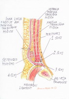 Groin hernia, Shouldice hernioplasty, excision of cremasteric muscle, incision of transverzalis fascia